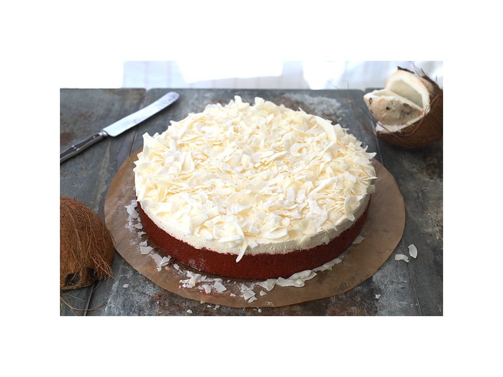 Nadílka z kokosových hoblin na jemném krému v efektních červených sušenkách Red velvet. Sametová láska. Z dortu uděláte průměrně 12-14ks.