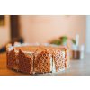 Oblíbená medová klasika, netradičně posypaná karamelový sušenkami a ozdobená karamelovou pláství. Z dortu uděláte průměrně 12-14ks.